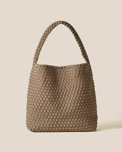 Handwoven from our signature neoprene in taupe, the Nomad Large Hobo is an extra-spacious update to our bestselling hobo silhouette. With a wide strap that sits flat on the shoulder for comfort, this large, lightweight bag is perfect for errands, work, or travel.