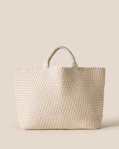 Handwoven from our signature neoprene in cream, the St. Barths Large Tote is a lightweight and versatile large tote bag—the ultimate carryall for work, travel, or beach days. Spacious yet soft in structure, this woven neoprene tote bag is designed to hold everything you need while looking effortless and polished.