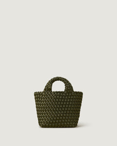 The St. Barths Petit Tote in handwoven forest green satin is an elegant update to our signature silhouette. New for Holiday ’25, this mini tote brings shine and texture to your day-to-night style—perfect as a holiday party bag or chic evening handbag. Matching satin zippered pouch included.