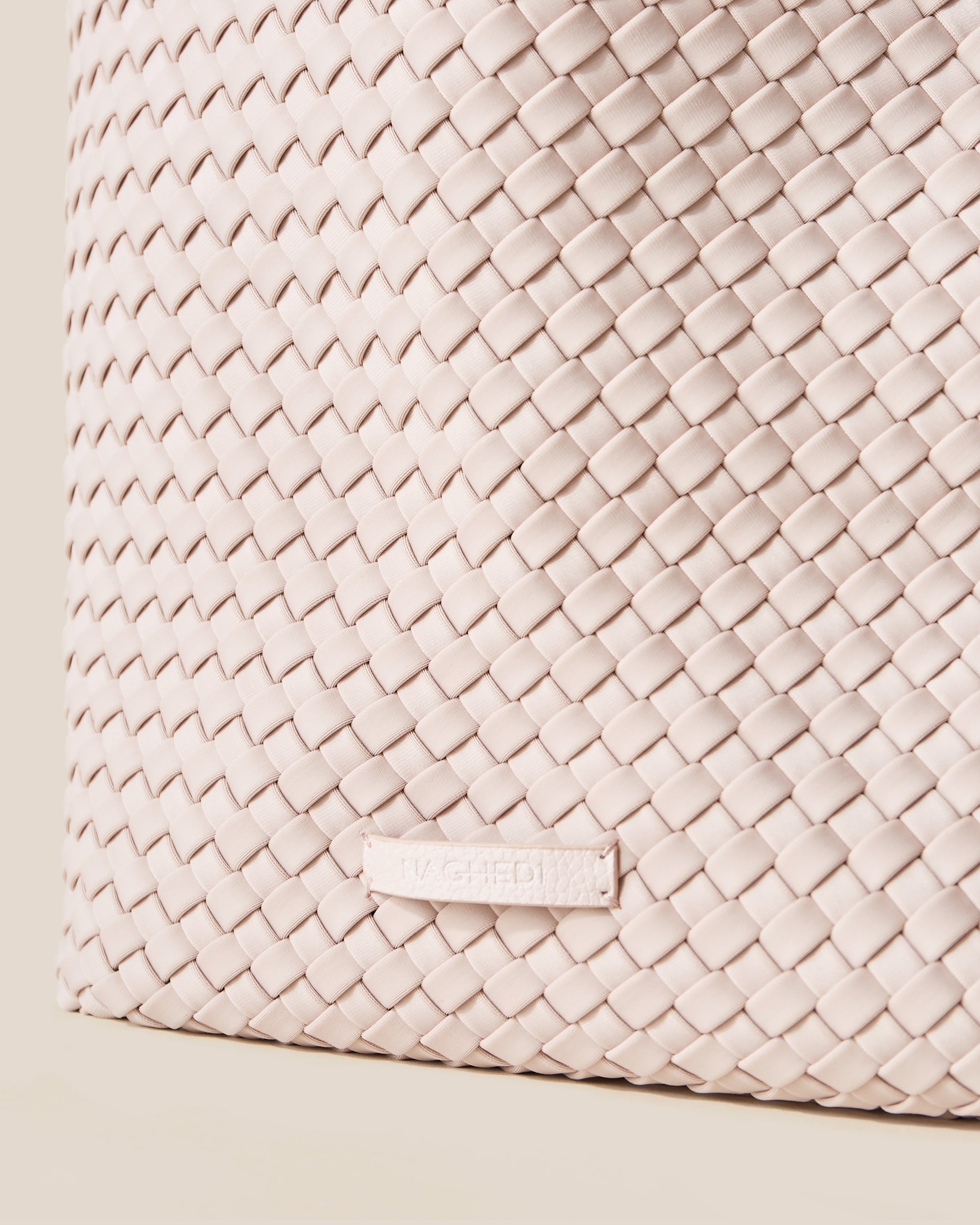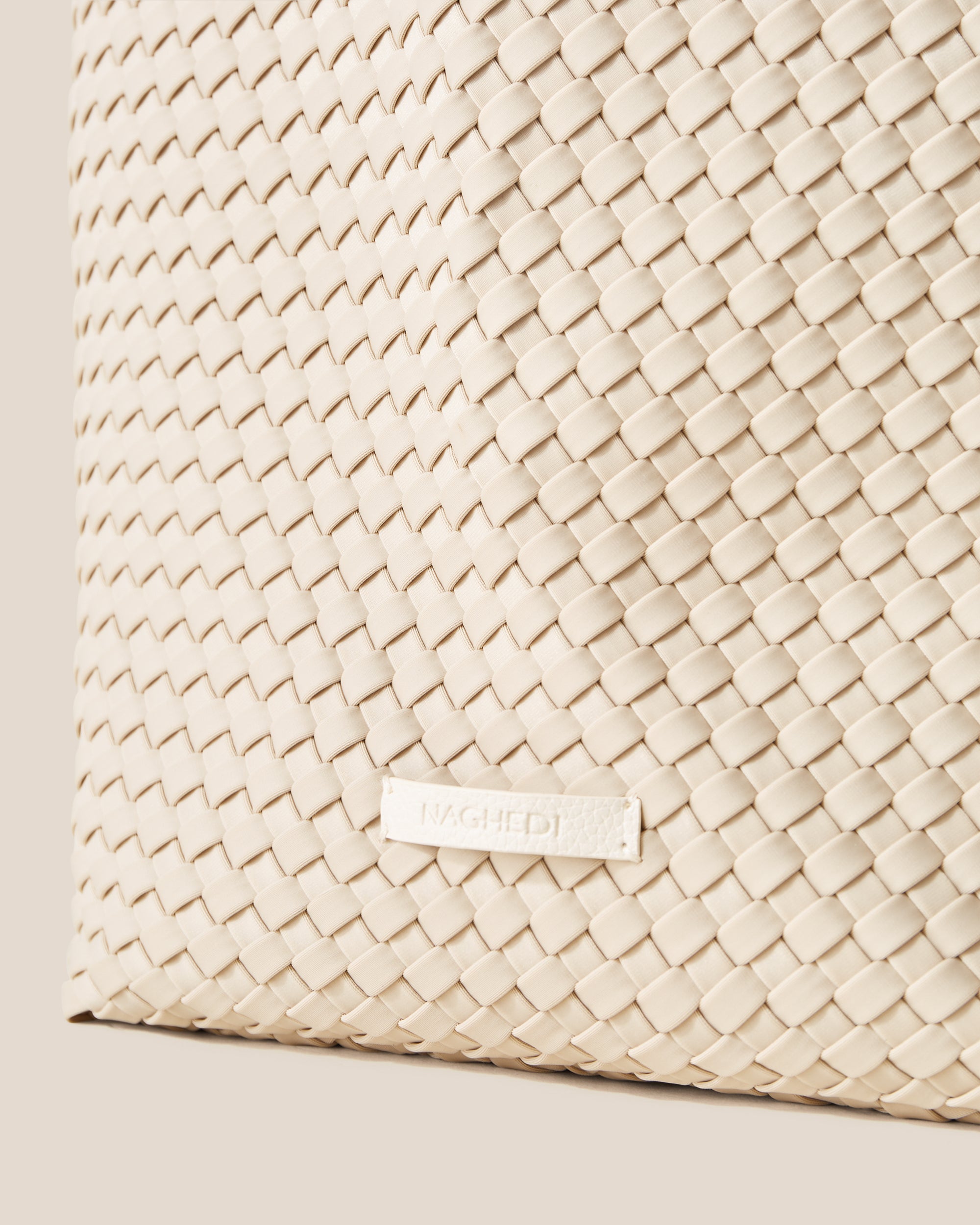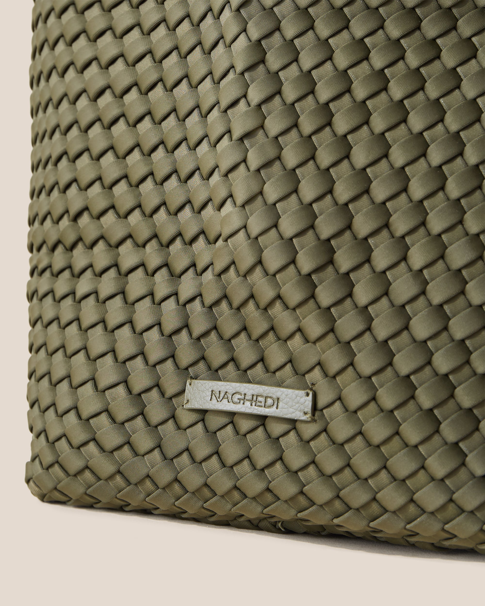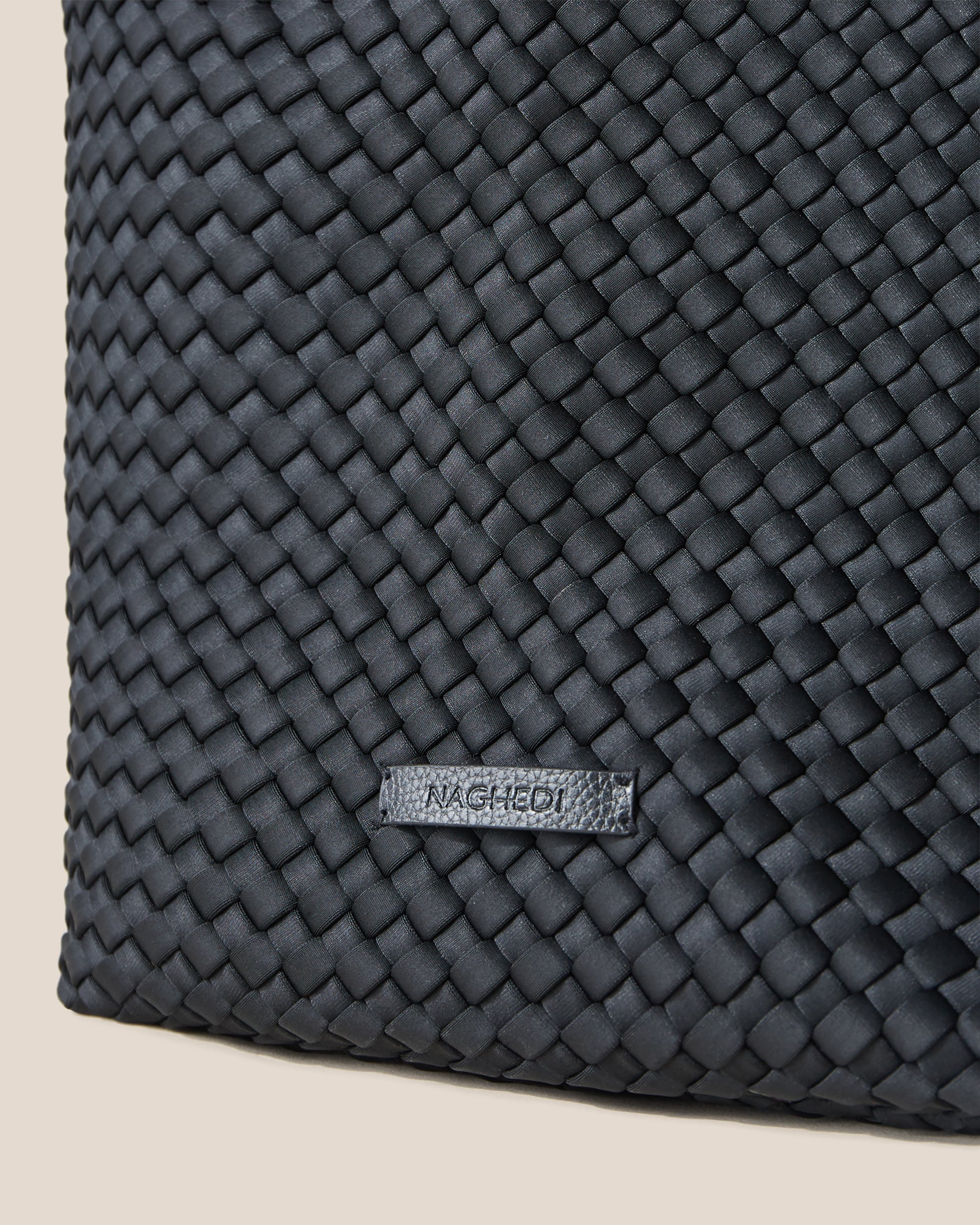 Handwoven neoprene in dark chocolate brown. Designed for travel, the Jetsetter Large Tote can also be carried for work and baby.