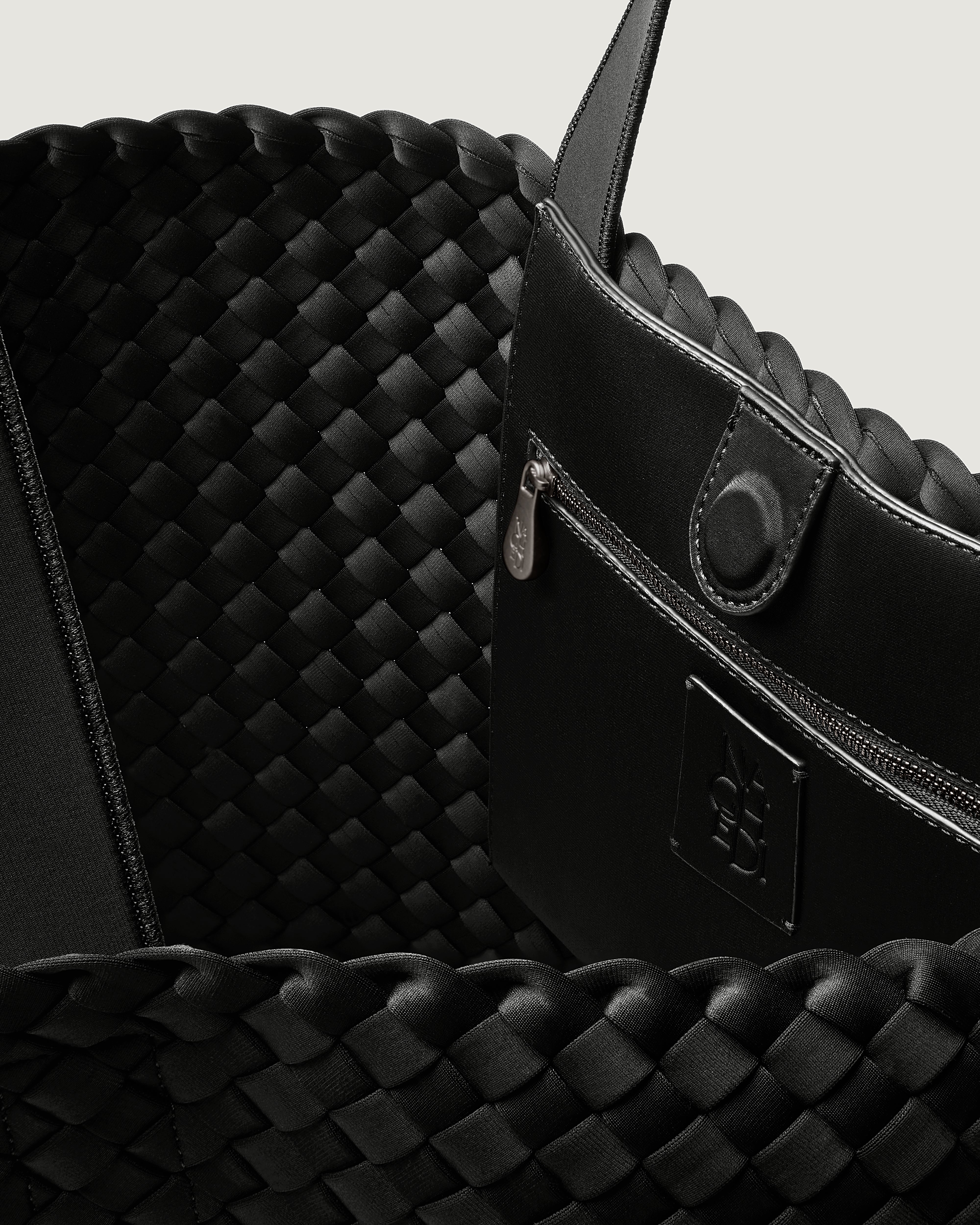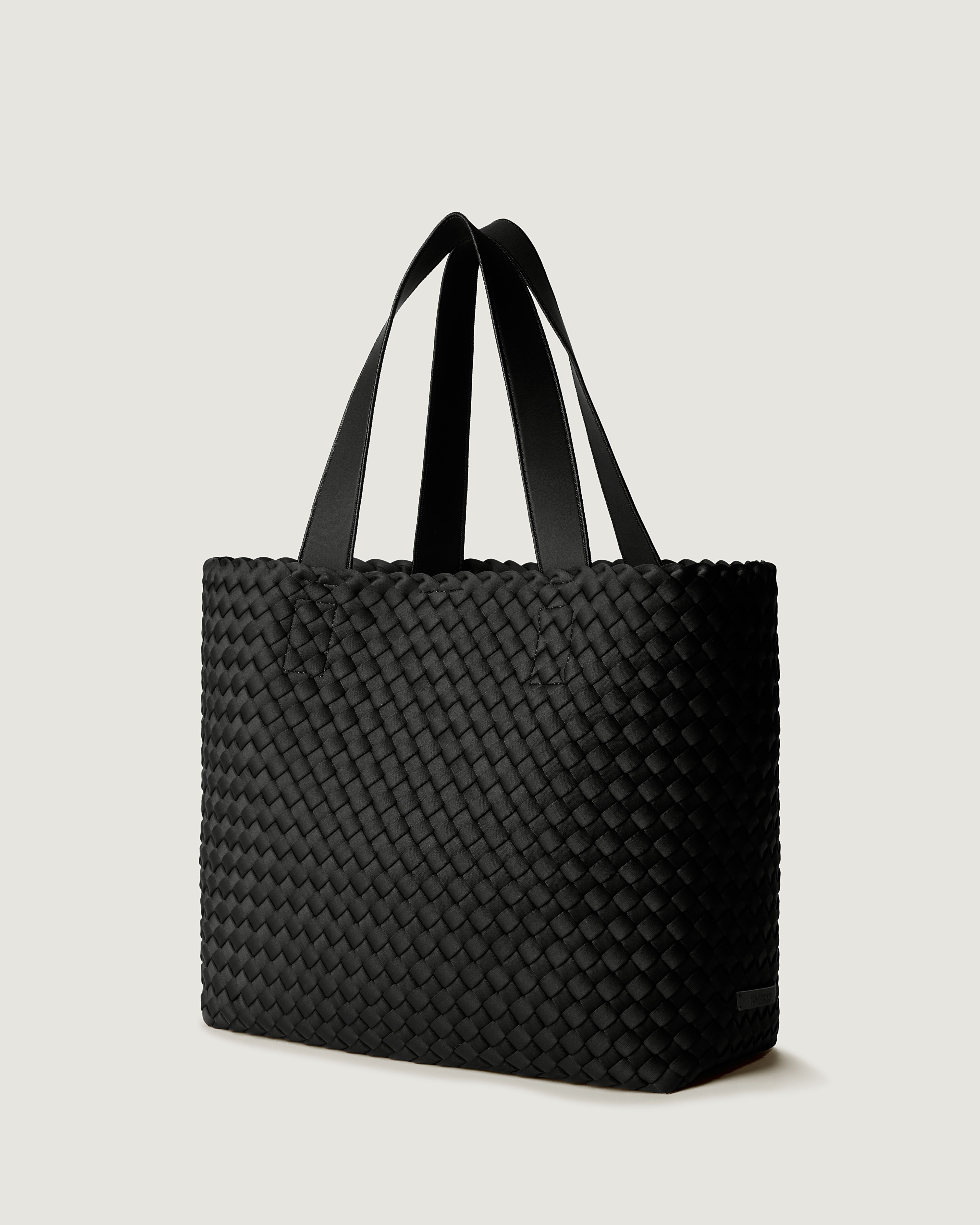 Handwoven from our signature neoprene in true black with embroidered cherry detail. The St. Barths Large Tote is a lightweight and versatile large tote bag—the ultimate carryall for work, travel, or beach days. Spacious yet soft in structure, this woven neoprene tote bag is designed to hold everything you need while looking effortless and polished.