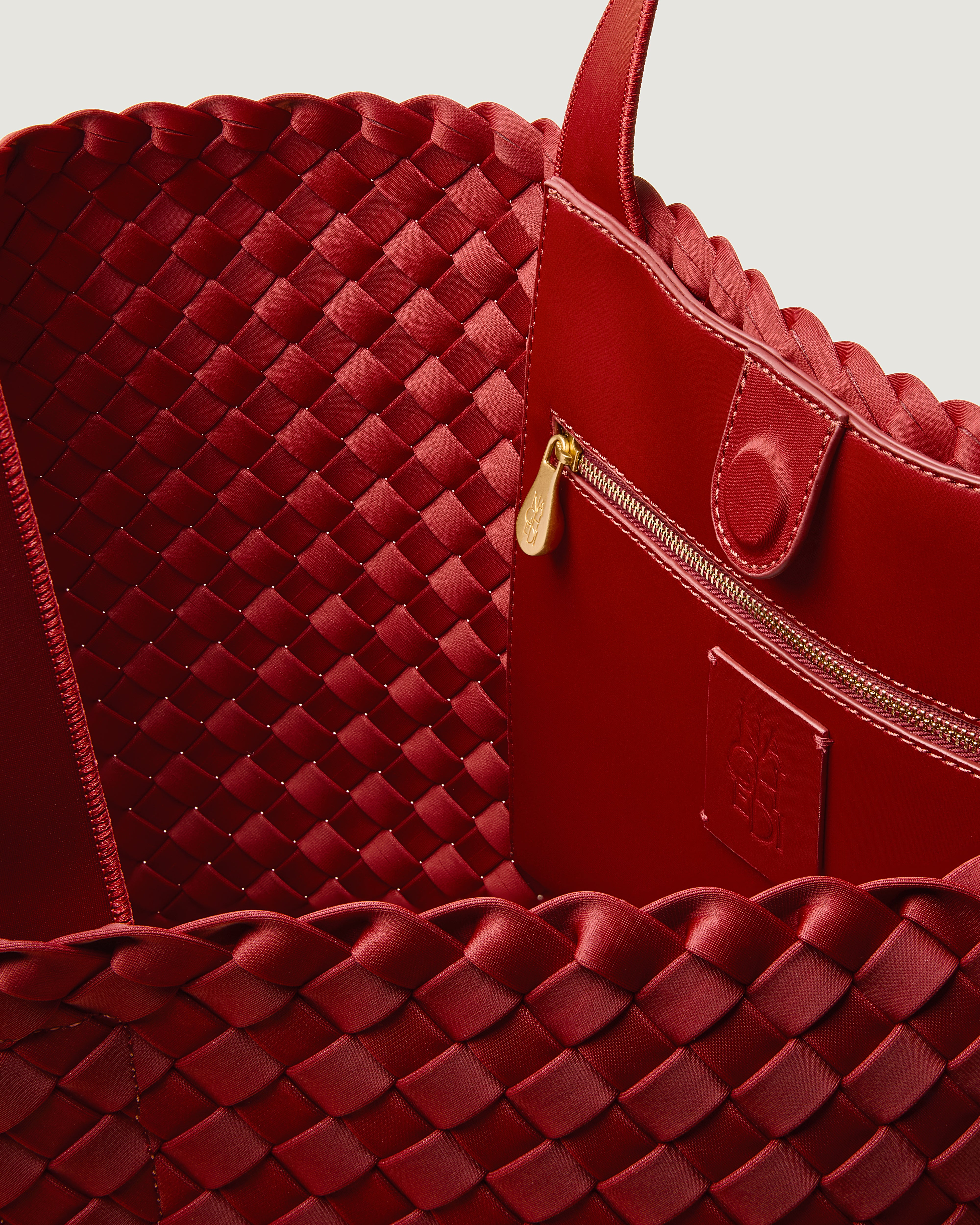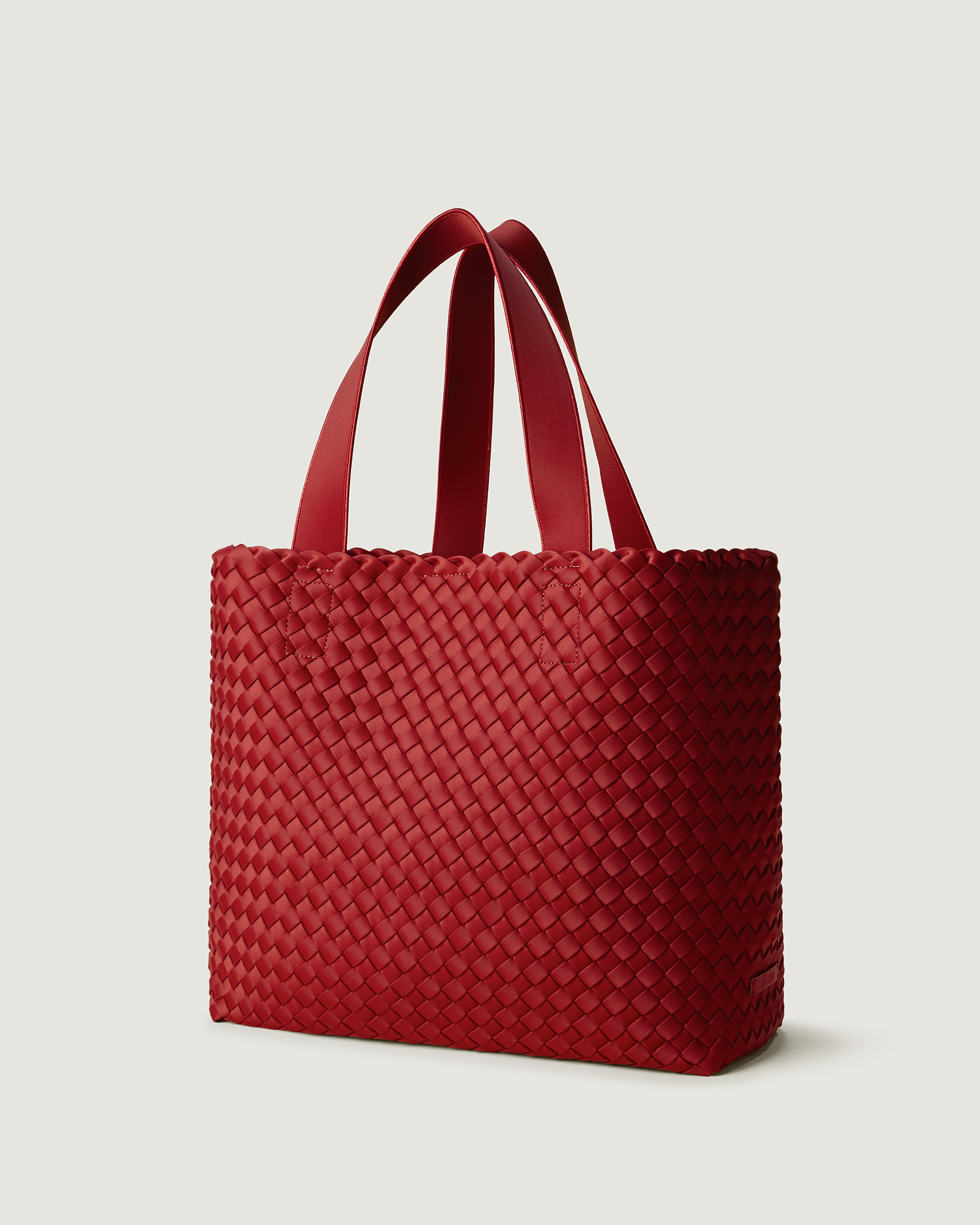 Handwoven in rich red neoprene, this medium woven tote features a slightly wider weave than our signature St. Barths styles, giving it a modern texture and relaxed shape. Lightweight and versatile, it’s designed for daily use.
