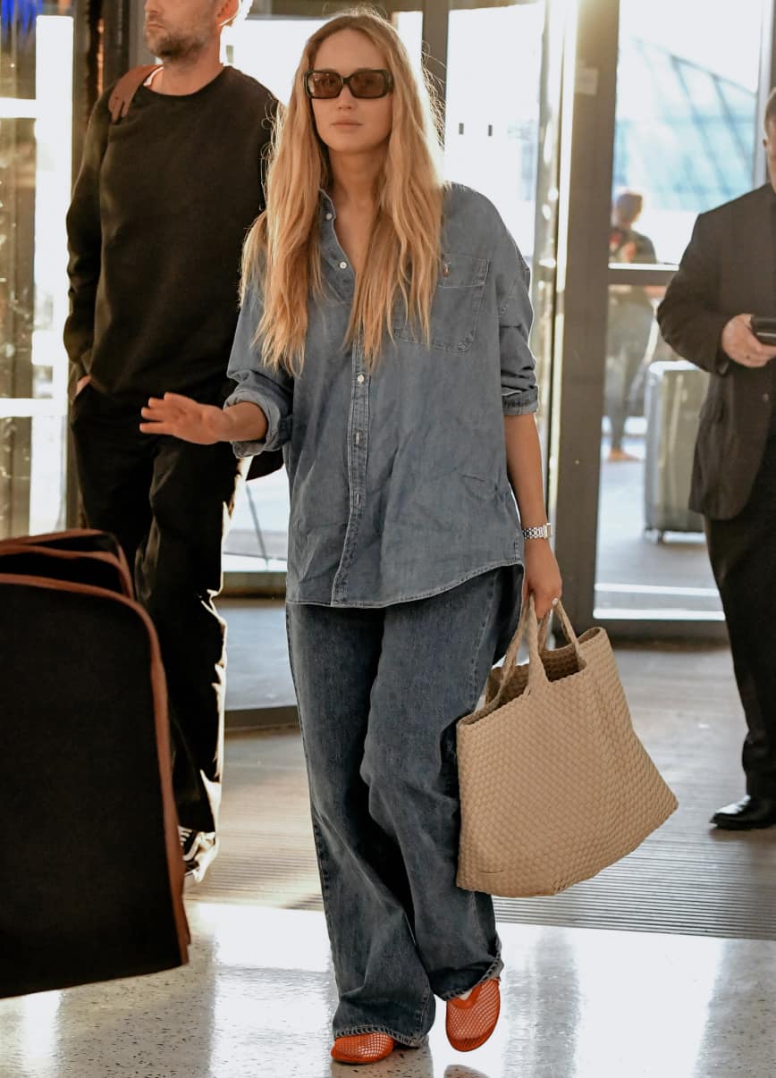 Gisele in NYC with our St. Barths Medium Tote in Cashmere.