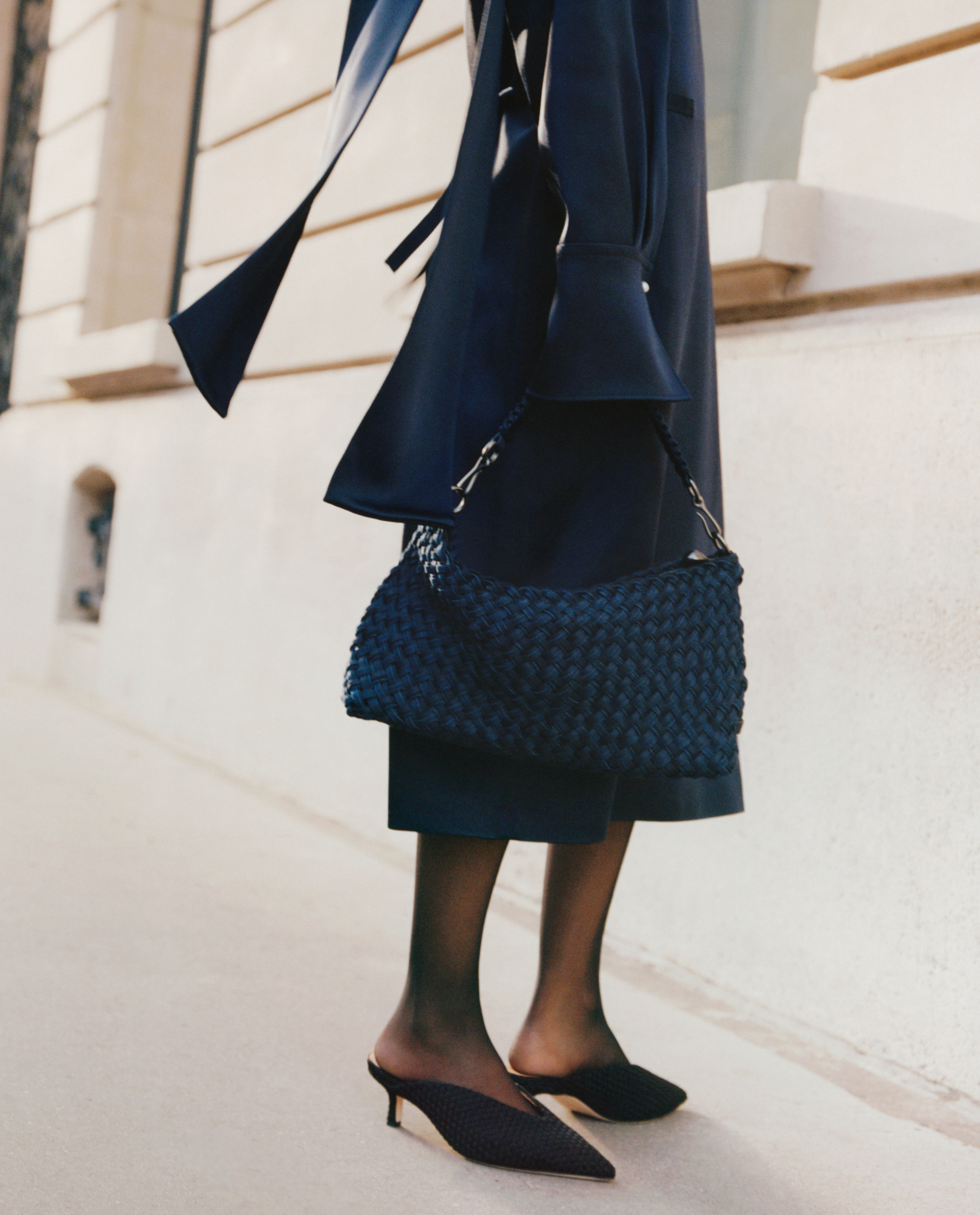 • Handwoven neoprene bucket bag