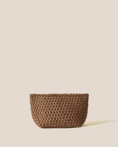 Handwoven from our signature neoprene in camel and saddle brown, the Portofino Large Cosmetic Pouch is a spacious makeup bag and travel toiletry case designed to hold full-sized beauty products, skincare, and daily essentials.