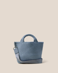 Handwoven from our signature neoprene in Handwoven neoprene and nylon handles in muted denim blue, the St. Barths Large Tote is a lightweight and versatile large tote bag—the ultimate carryall for work, travel, or beach days. Spacious yet soft in structure, this woven neoprene tote bag is designed to hold everything you need while looking effortless and polished.