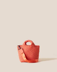 Handwoven from our signature neoprene in muted orange, the St. Barths Petit Tote is a compact, lightweight mini tote bag that transitions seamlessly from day to night while carrying all your essentials.
