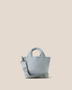 Handwoven from our signature neoprene in ice blue, the St. Barths Petit Tote is a compact, lightweight mini tote bag that transitions seamlessly from day to night while carrying all your essentials.