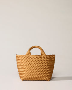 The St. Barths Petit Tote in handwoven golden yellow satin is an elegant update to our signature silhouette. New for Holiday ’25, this mini tote brings shine and texture to your day-to-night style—perfect as a holiday party bag or chic evening handbag.