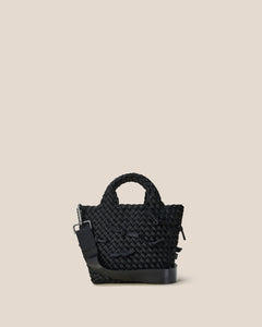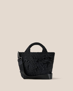Handwoven neoprene in true black. Handwoven reclaimed neoprene in with knot detail. Perfect for carrying all day, the St. Barths Small Tote is the bag you'll reach for every morning.